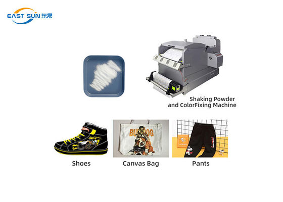 После того, как дизайн напечатан на пленку DTF PET, клейкий порошок TPU наносится на напечатанный дизайн.ТПУ в виде клейкого порошка тает и связывает конструкцию с тканью., создавая прочный и длительный трансфер.