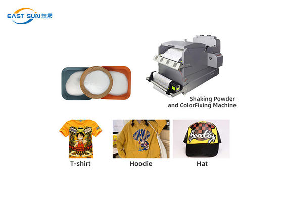 Посыпать порошок TPU DTF равномерно на печатный рисунок на переносной пленке.