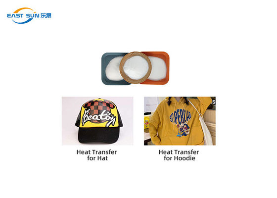 Порошок для ДТФ в текстильной печати. После того, как дизайн напечатан на ДТФ ПЭТ пленке, порошок адгезива из ТПУ наносится поверх напечатанного дизайна. При воздействии тепла и давления порошок адгезива из ТПУ плавится и приклеивает дизайн к ткани, создавая прочный и долговечный трансфер.